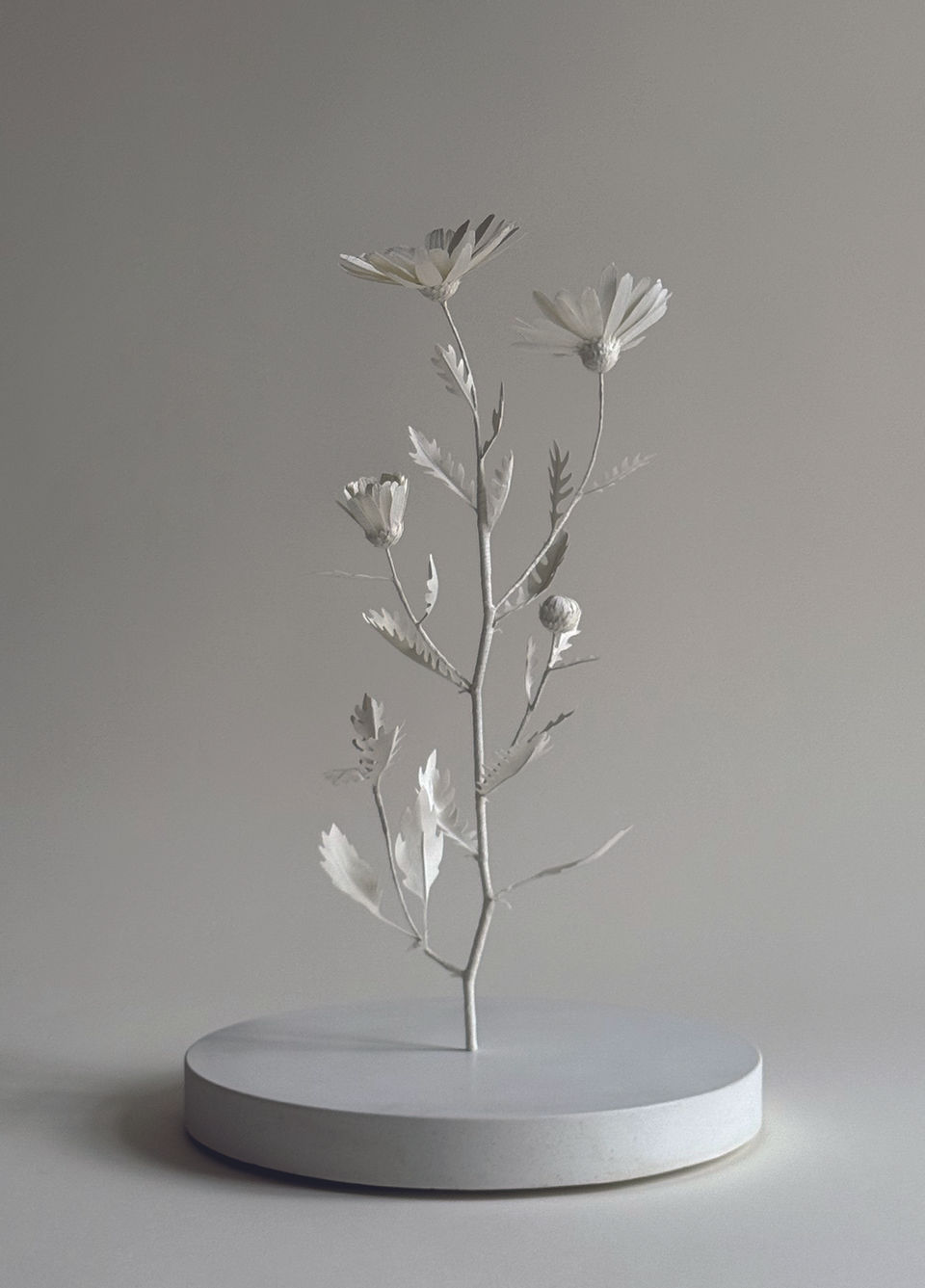 The paper pulp used in the workshop consist of cotton linters*, the same material that is used in the making of banknotes. During my experiments with the handmade paper, I started thinking about different perceptions of “values”. My attention was drawn towards Swedish banknotes – with portraits of cultural personalities and environmental motifs that are linked to them. For example, the banknote for 50 SEK which depicts Evert Taube alongside Vinga lighthouse and Bohuslän’s province flower, the wild honeysuckle. There are 7 flowers depicted on Swedish banknotes. I chose to portray these flowers in paper.